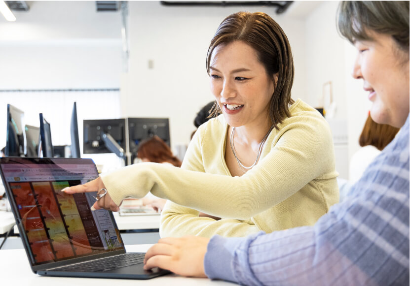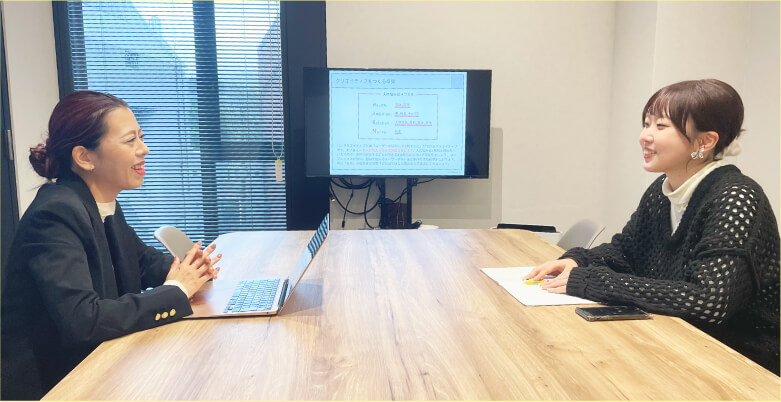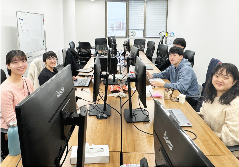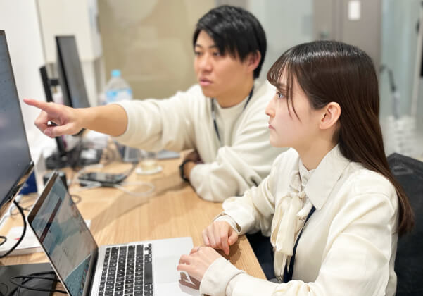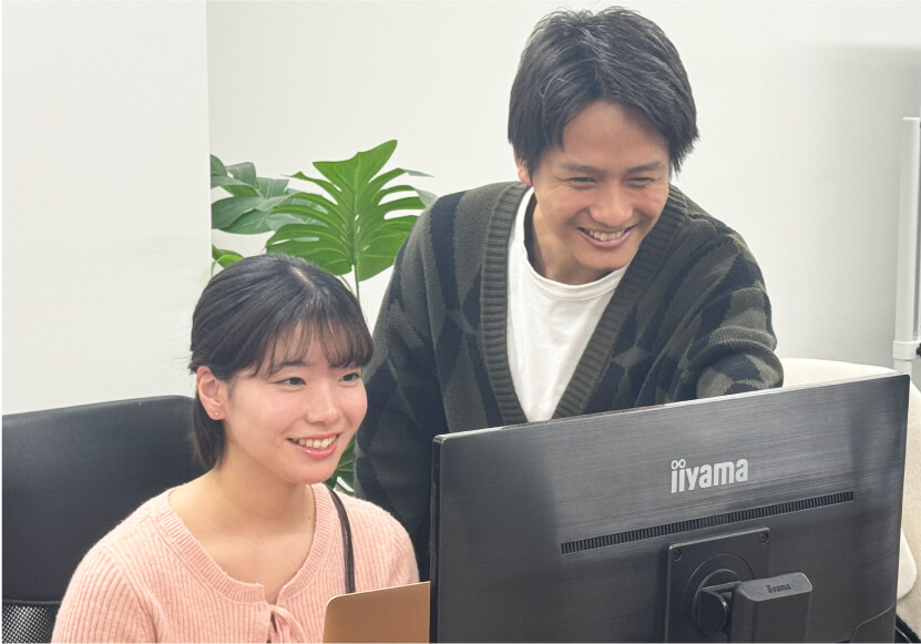 インターンに初めて挑戦する学生が多いため、丁寧なフォロー体制を整えています。社員や先輩インターン生に気軽に相談できる風通しの良い職場で、着実にスキルアップできます。